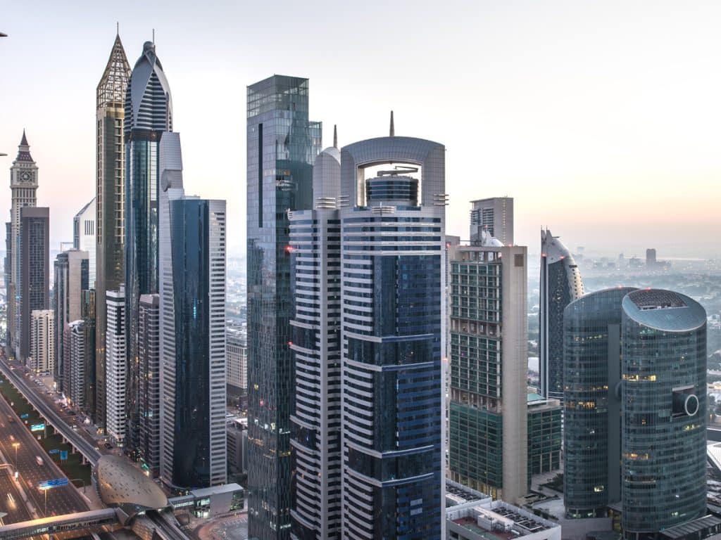 The Rolex Tower in Dubai (front left), among several other skyscrapers.
