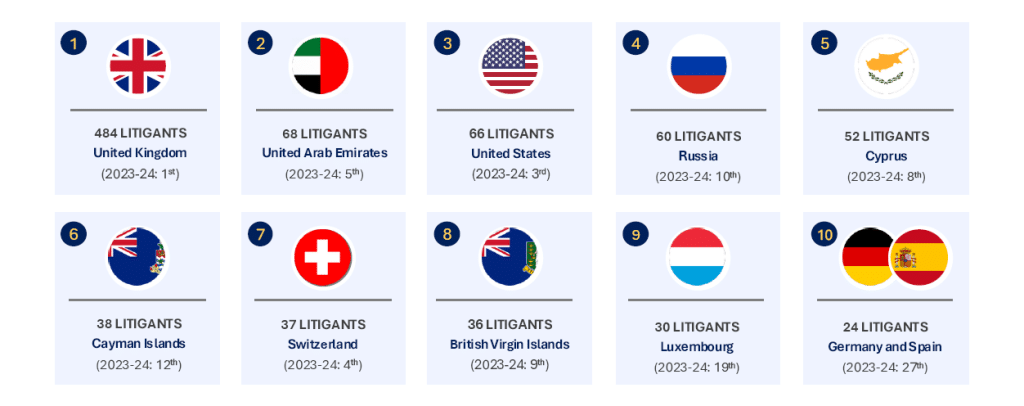 This rise reflects a growing tendency among Emirati businesses and high-net-worth individuals to rely on English law and London’s courts to resolve complex and high-value disputes. UAE v UAE disputes were among the most frequent match-ups in the court, showing that parties from the same jurisdiction are increasingly turning to London to adjudicate their differences.