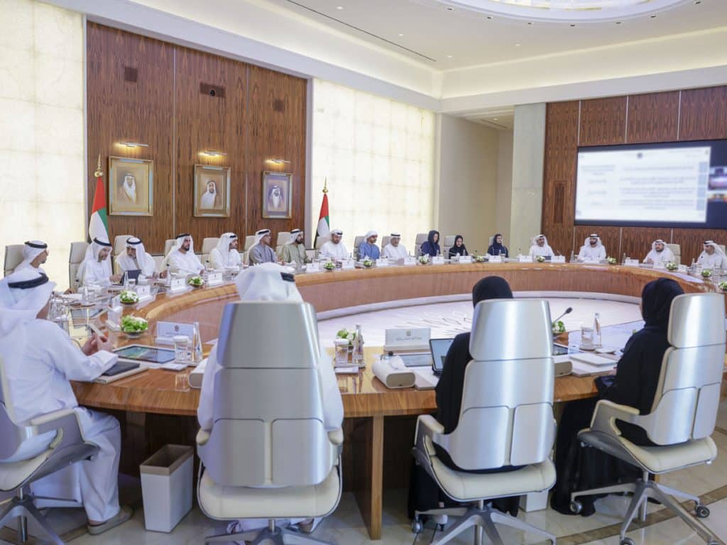 Sheikh Mohammed bin Rashid Al Maktoum (centre) with members of the UAE Cabinet. Photo credit: Emirates News Agency (WAM).